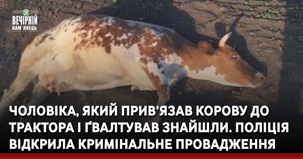Подія мала місце в селищі Антоніни. Корову прив’язали до трактора і тягнули ґрунтовою дорогою. Поліцейські вже встановили особу ймовірного порушника — це 22-річний житель сусіднього села.