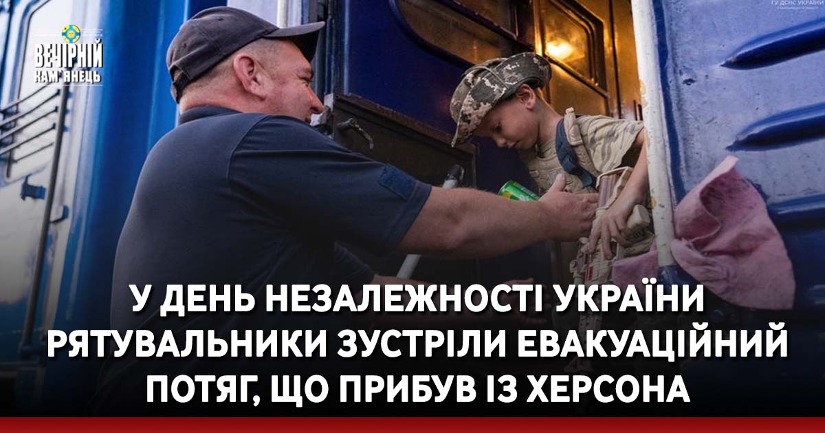 Вранці 24 серпня на перон Хмельницького вокзалу прибув евакуаційний протяг з Херсону, його зустріли рятувальники та представники Червоного Хреста України.
