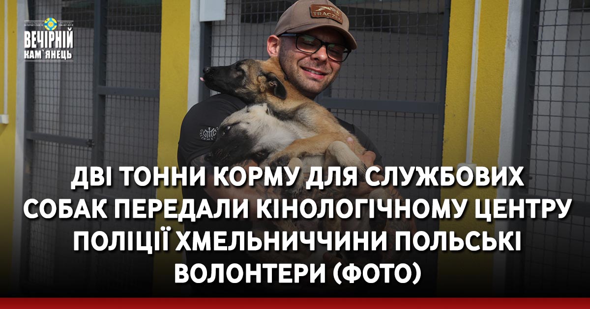 Представники польського благодійного фонду під керівництвом Ігоря Трача передали кінологічному центру ГУНП в Хмельницькій області понад дві тони корму для службових собак та цуценят.