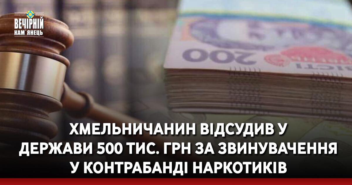На Хмельниччині звинувачений у контрабанді наркотиків чоловік відсудив у держави 500 тис. грн моральної компенсації. У судах чоловік довів свою невинуватість і на підставі цих рішень подав позов з вимогою сплатити йому відшкодування за безпідставно проведений під слідством час. Суд ці вимоги частково задовольнив, пише Zaxid.net.