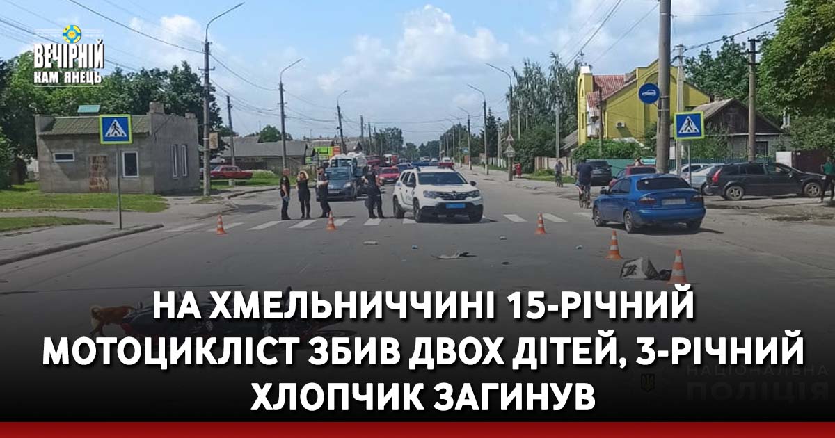 Аварія сталась 18 липня близько 12:30 години у місті Шепетівка по вулиці Судилківській. 15-річний підліток, рухаючись на мотоциклі «Мустанг», скоїв наїзд на двох дітей, які переходили дорогу по пішохідному переходу.