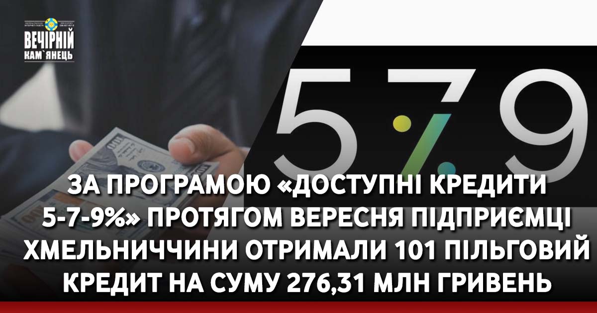За період дії воєнного стану в Україні у межах Державної програми «Доступні кредити 5-7-9%» суб’єктами підприємництва Хмельниччини укладено кредитні договори на загальну суму 5752,31 млн гривень.