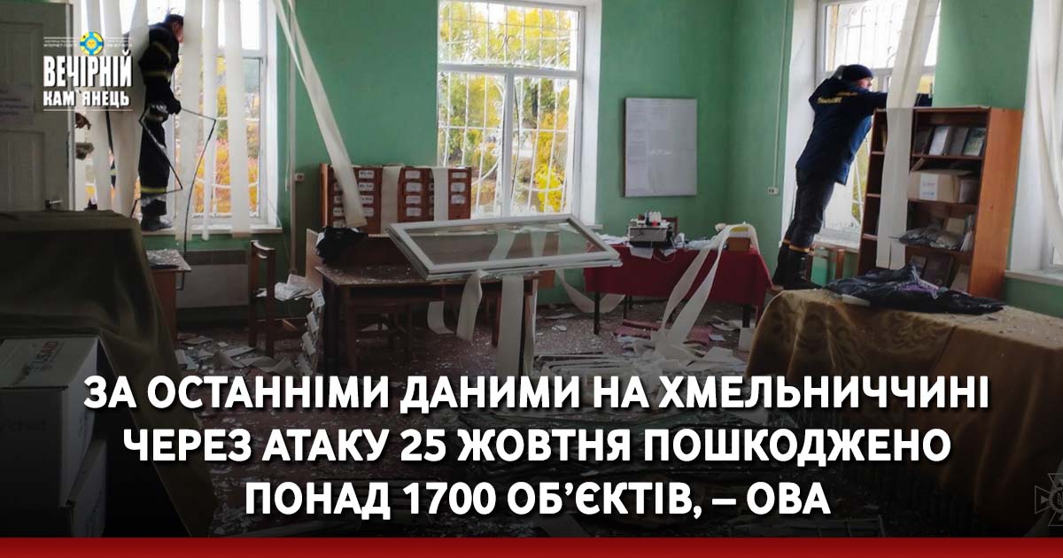 Станом на кінець доби 25 жовтня у чотирьох громадах пошкоджено 1 760 об’єктів. З них: