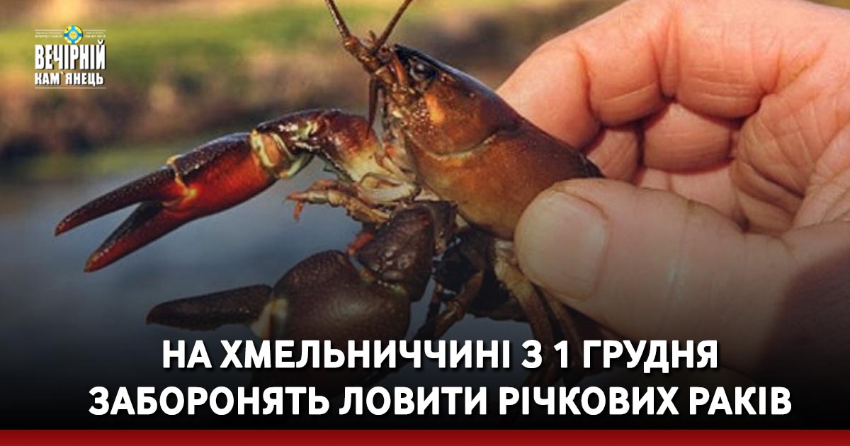 З 1 грудня 2023 року розпочинається заборона на вилов річкових раків у рибогосподарських водних об’єктах Хмельницької області. Заборона триватиме до 30 червня 2024 року включно.