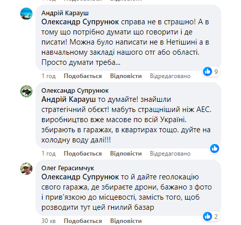 « З такою інформацією слід бути обережними. Нагадаю за виставку дронів у Чернігові 19 серпня 23 року, куди був точний приліт. Постраждало багато людей, в тому числі дітей. Памʼятайте, серед "своїх" теж є багато гнилих» , - йдеться у коментарях.