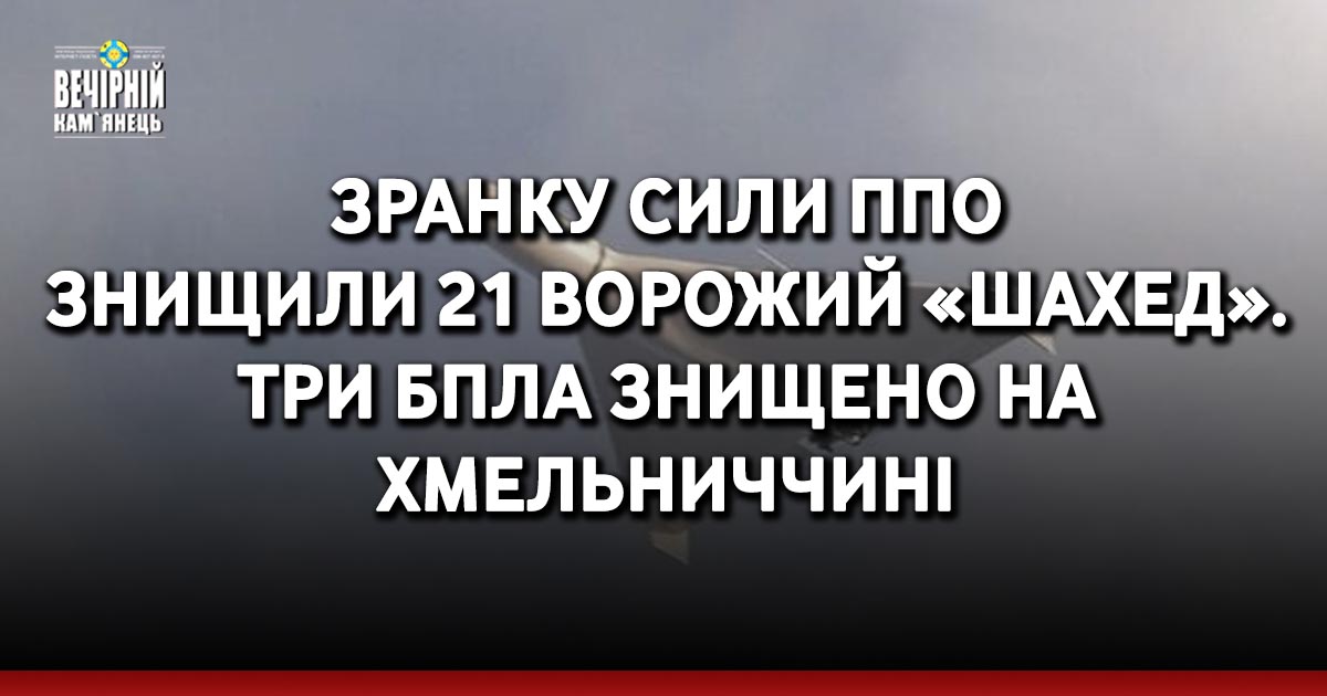 Протиповітряною обороною збито 21 із 29 ударних БпЛА в межах Миколаївської, Херсонської, Дніпропетровської, Черкаської, Кіровоградської та Хмельницької областей.
