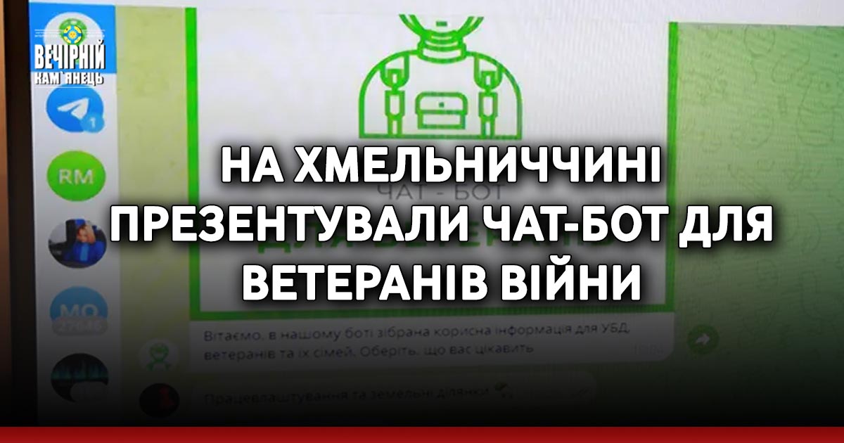У Хмельницькій області створили Telegram чат-бот “Ветеран Хмельниччини”, який допоможе учасникам та учасницям бойових дій швидко знайти необхідну для них інформацію. Застосунок планують постійно оновлювати та адаптувати під потреби ветеранів.