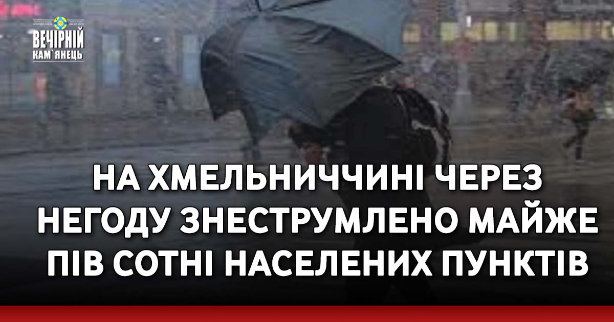 Станом на 8-му годину ранку 30 вересня через негоду, а саме зливу та пориви вітру до 15–20 м/с, в Хмельницькій області знеструмлено 45 населених пунктів, з них 37 — частково. Електрична енергія відсутня майже у 5 700 споживачів.