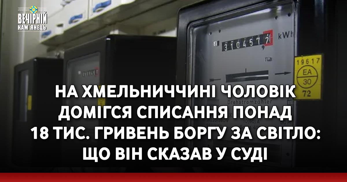 Хмельницький суд зобов’язав "Хмельницькобленерго" і "Хмельницькенергозбут" списати українцю борг за спожиту електроенергію в сумі понад 18 тисяч гривень.