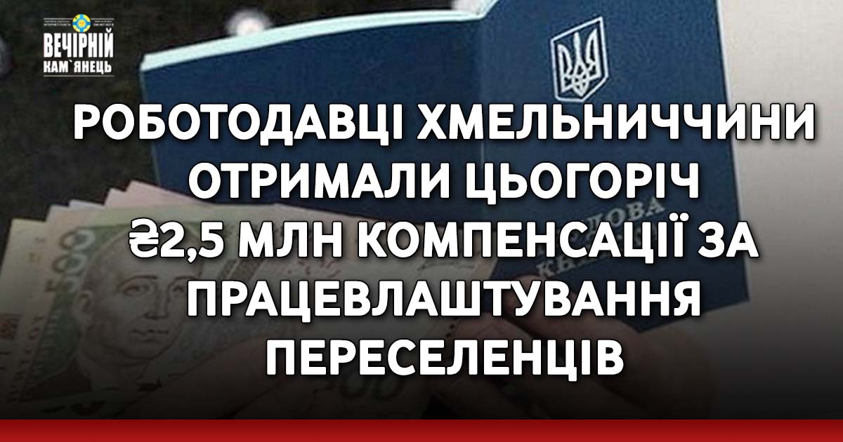Із початку року 60 роботодавців Хмельниччини отримали компенсацію на оплату праці за працевлаштування 96 внутрішньо переміщених осіб. Загальна сума виплат становить 2,5 мільйона гривень.