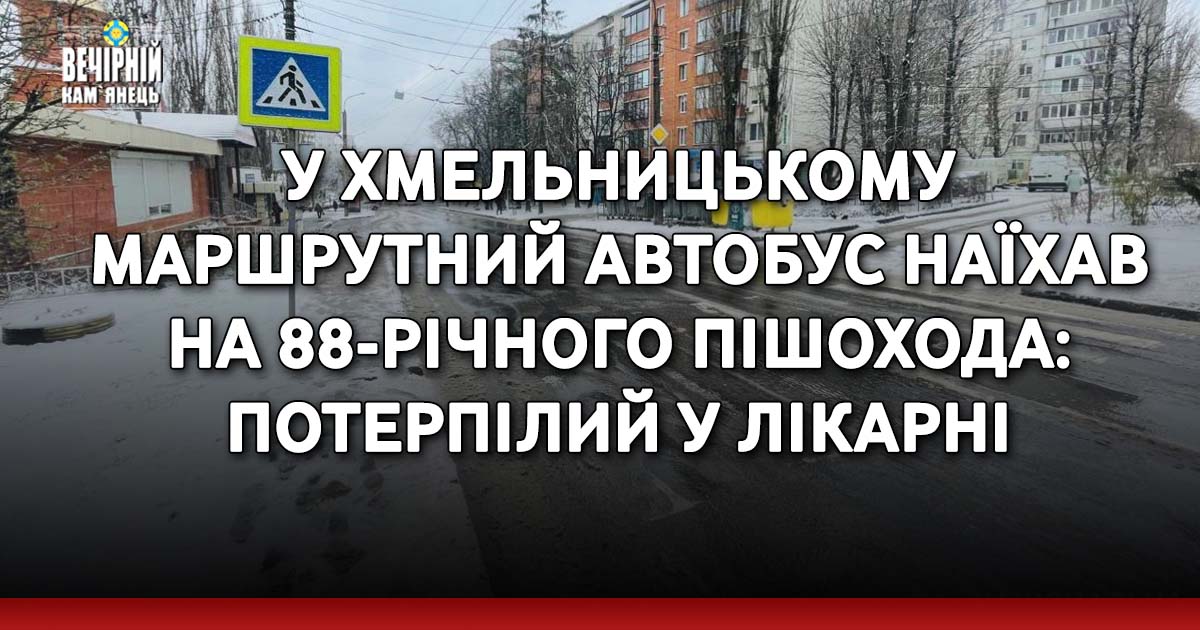 Попередньо встановлено, що 48-річний водій маршрутного автобуса «Mercedes-Benz Citaro» під час посадки/висадки пасажирів на зупинці громадського транспорту допустив наїзд на 88-річного пішохода. Внаслідок автопригоди пенсіонер отримав тілесні ушкодження, його госпіталізували до Хмельницької міської лікарні.