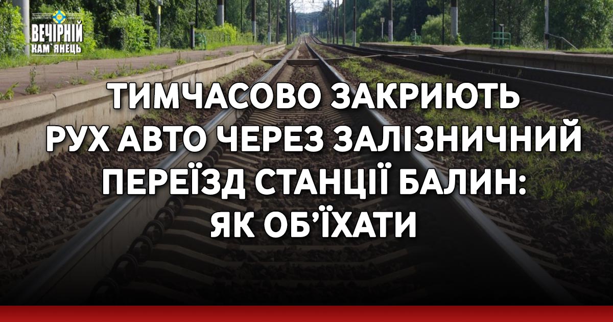 На Хмельниччині упродовж кількох днів закриють рух автотранспорту через залізничний переїзд станції Балин. Там виконуватимуть невідкладні ремонтно-колійні роботи.