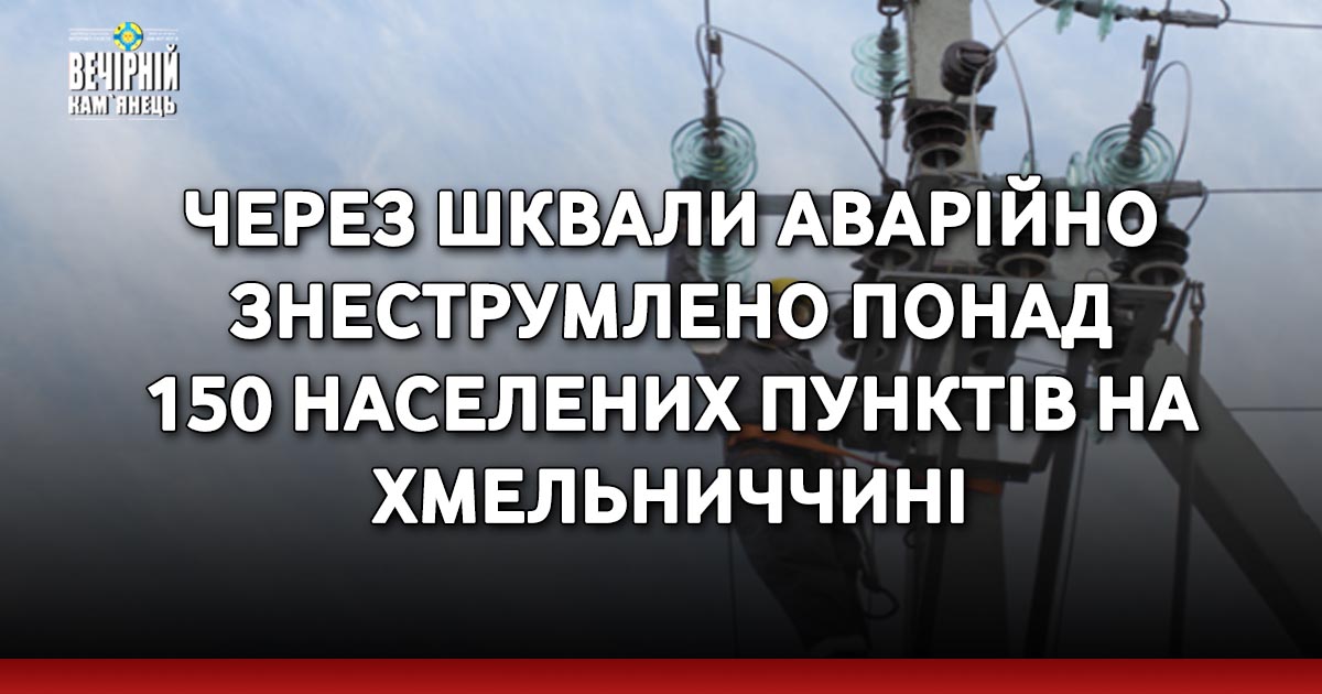 Нічні злива та шквальний вітер призвели до аварійних пошкоджень електромереж на Хмельниччині. Станом на ранок сьогодні, 28 липня, в області було знеструмлено понад півтори сотні населених пунктів.