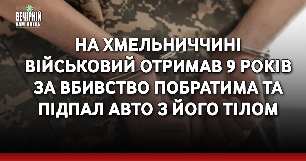 Теофіпольський районний суд Хмельницької області виніс вирок 28-річному військовослужбовцю за умисне вбивство. Під час застілля він застрелив свого співслужбовця, а щоб приховати злочин, підпалив автомобіль із тілом. За це суд призначив йому дев’ять років тюрми та зобов’язав виплатити рідним загиблого 900 тис. грн компенсації, пише Zaxid.net.