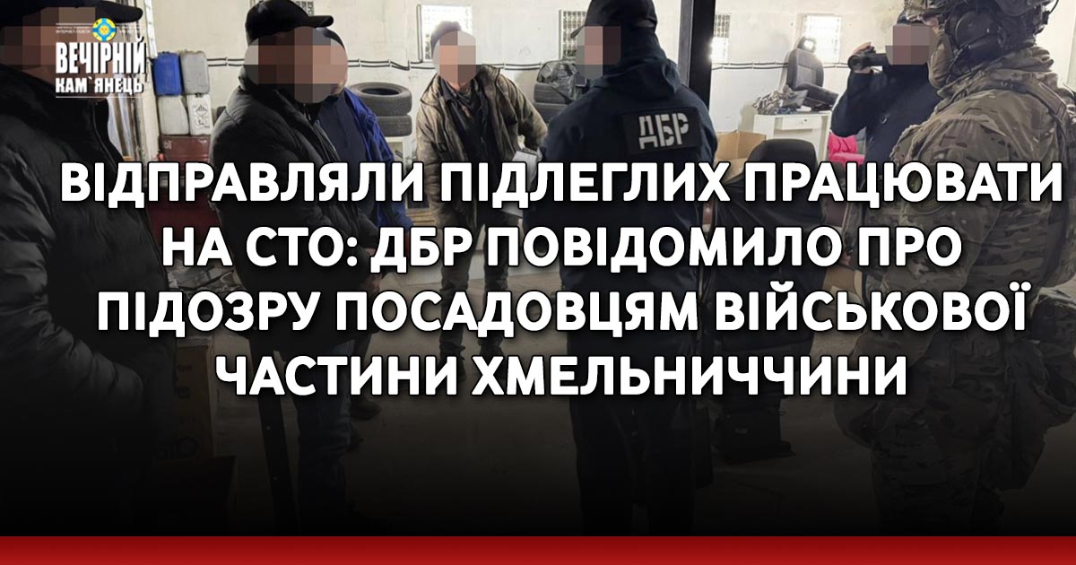 Повідомлено про підозру двом посадовцям військової частини з Хмельниччини, які замість служби відправляли військових працювати на приватній СТО.