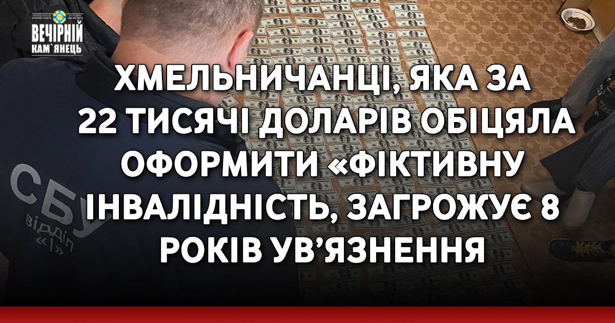 У Хмельницькому перед судом постане жінка, яка обіцяла за 22 тисячі доларів допомогти отримати фіктивну групу інвалідності.