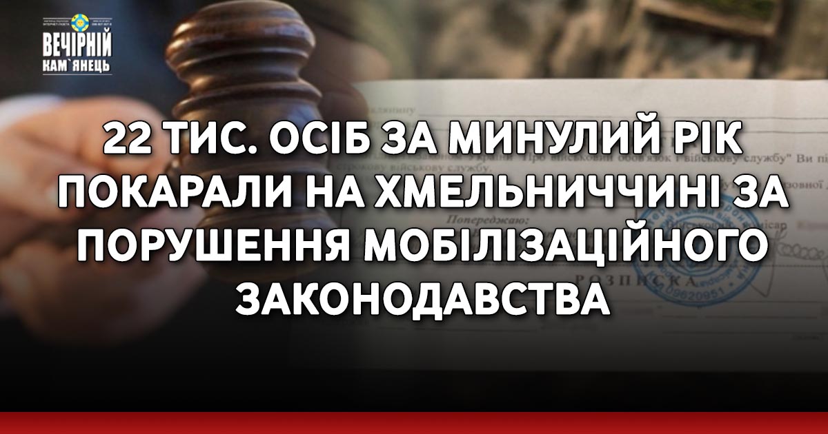 У Хмельницькій області протягом минулого року до адміністративної відповідальності за порушення правил військового обліку та законодавства у сфері оборони й мобілізації притягнули 21 971 громадянина України.