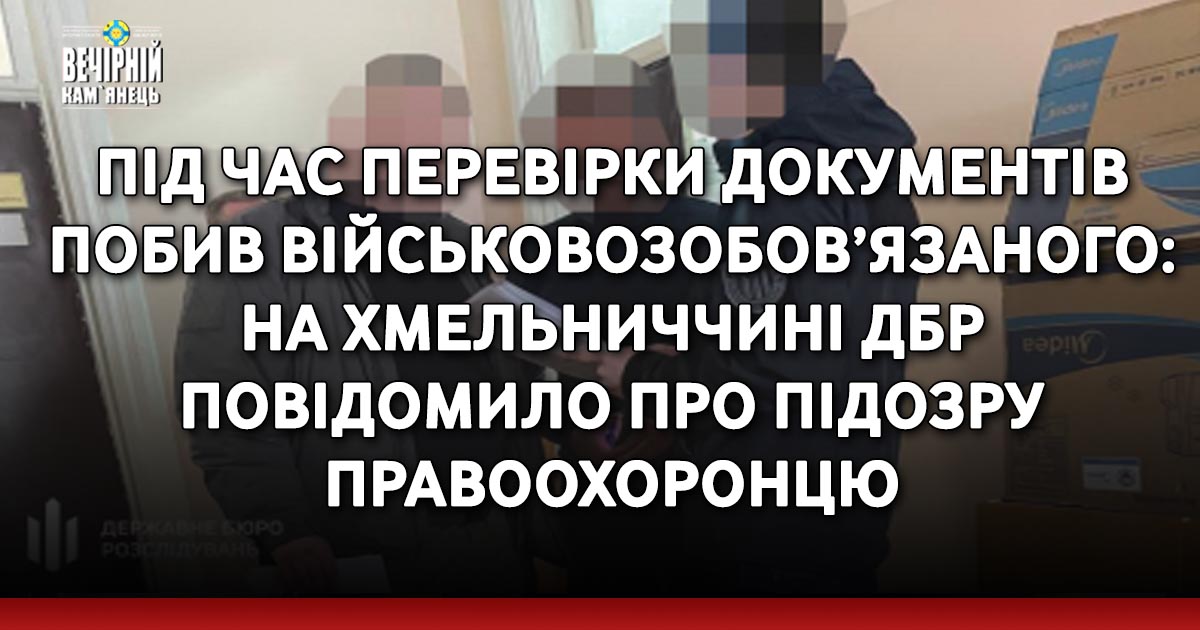 Працівники ДБР повідомили про підозру правоохоронцю з Хмельницького, який під час перевірки військово-облікових документів застосував силу до чоловіка.