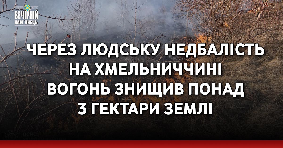 Про це повідомили в ГУ ДСНС в Хмельницькій області. Загоряння виникали у всіх районах Хмельниччини. Вогонь знищив понад 3 гектари землі.