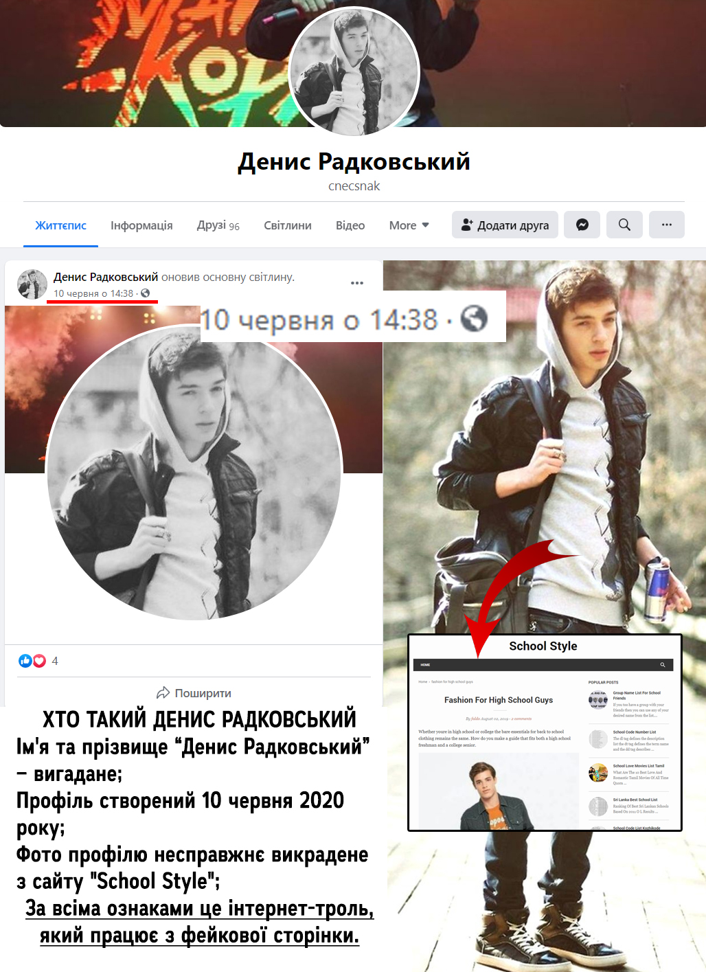 - Фото профілю несправжнє викрадене з сайту "School Style";