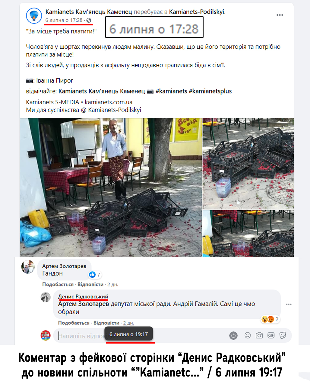 Після того, як була запущена дезінформація в коментарях, з одного і того ж фейкового акаунту "Денис Радковський" організатори провокації перейшли до другого етапу.
