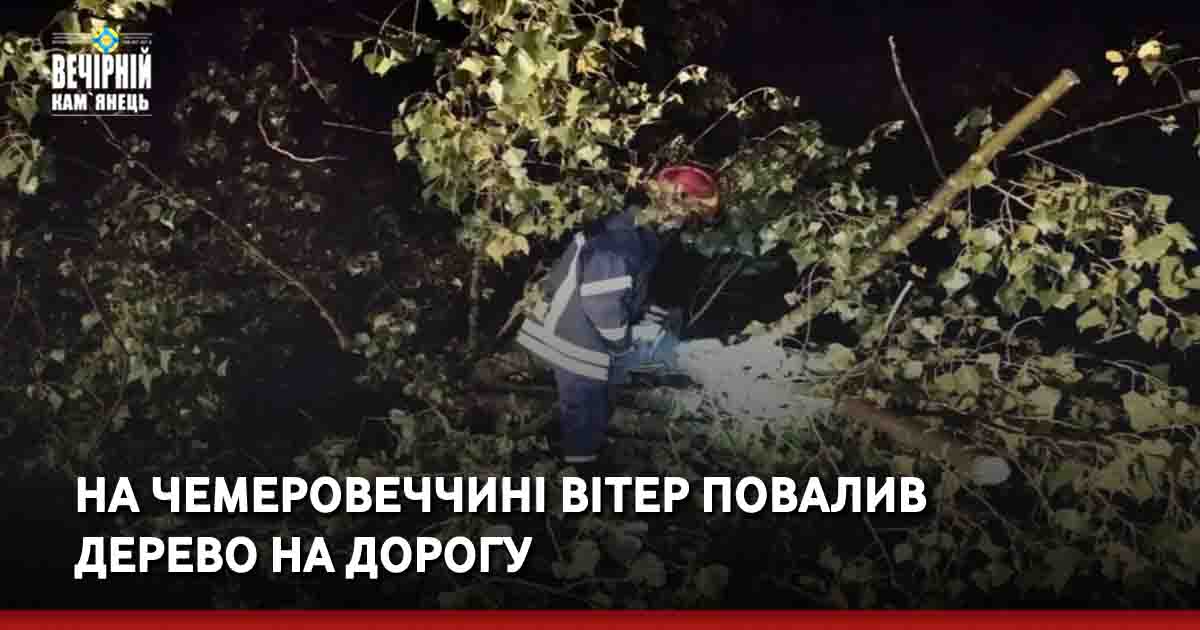 Як повідомили у ДСНС, 27 вересня о 05:50 на пункт зв’язку 20 Державної пожежно-рятувальної частини смт Чемерівці надійшло повідомлення про те, що на автодорозі між селами Бережанка-Андріївка та Чагарівка-Сокиренці Чемеровецького району вітер повалив дерево.