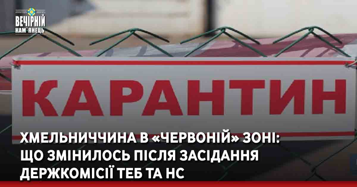 Згідно з сьогоднішнім позачерговим засіданням комісії ТЕБ та НС, до“червоної” зони карантину потрапили міста Хмельницький, Нетішин та Славута, Волочиський, Городоцький, Дунаєвецький, Красилівський, Старосинявський та Теофіпольський райони.