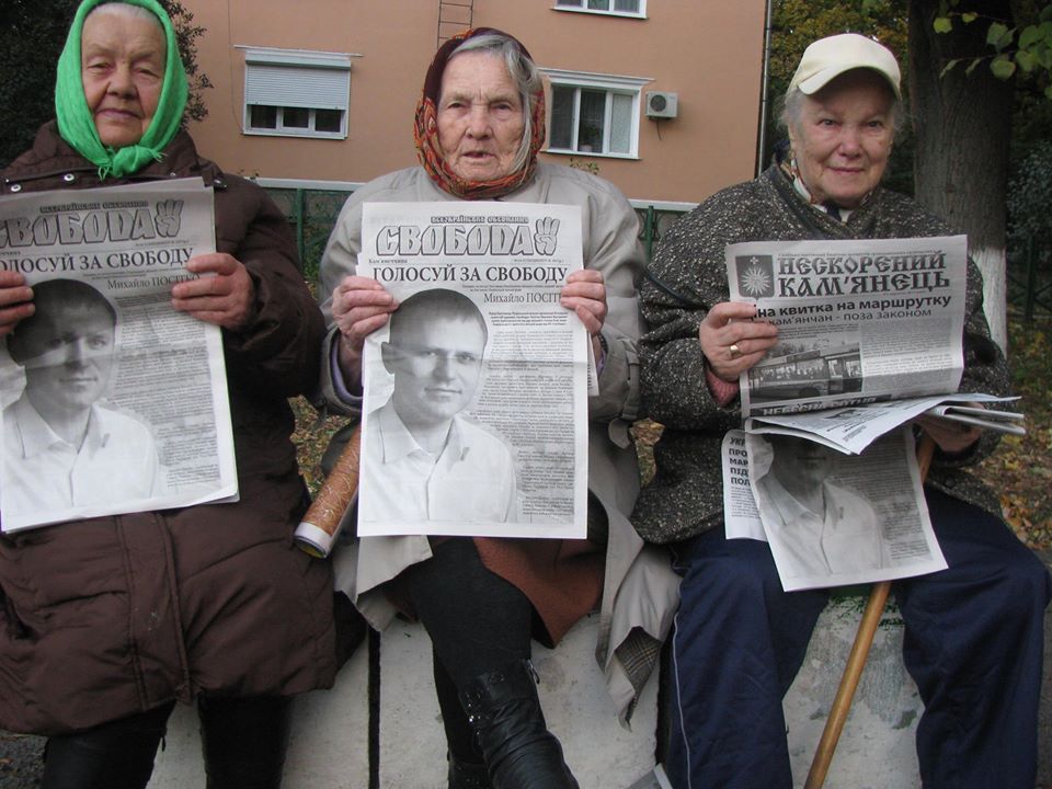 Бюлетень "Нескорений Кам'янець" та партійна газетка ВО "Свободи" в руках виборців