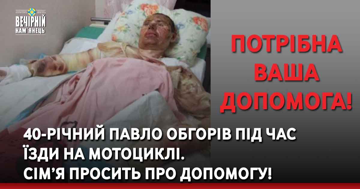 Наразі Павло в опіковому відділенні Хмельницької обласної лікарні, чоловіка готують до операції. Дружина Олександра просить всіх небайдужих допомогти.