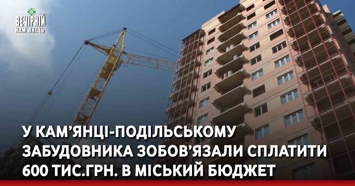 Забудовник звів у Кам’янці-Подільському багатоквартирний будинок та не виконав зобов’язань щодо пайової участі у створенні і розвитку інфраструктури Кам’янця-Подільського.