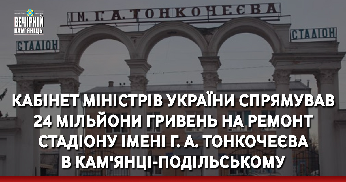 - капремонт міського стадіону імені Г. А. Тонкочеєва по просп. Грушевського, 29, у м. Кам’янці-Подільському (24,1 млн грн);