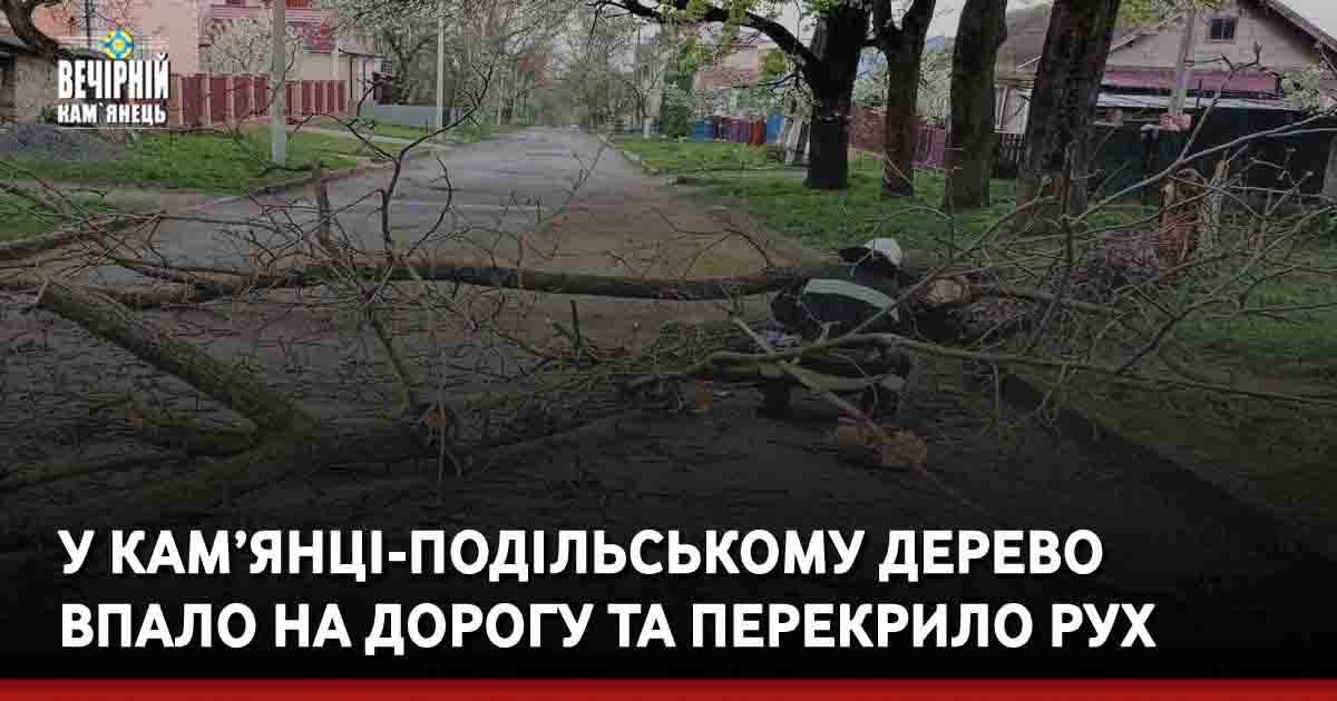 2 травня о 10:52 до Служби порятунку «101» надійшло повідомлення про те, що на вулиці Калішській, що в місті Кам’янець-Подільський, дерево впало на проїжджу частину дороги.