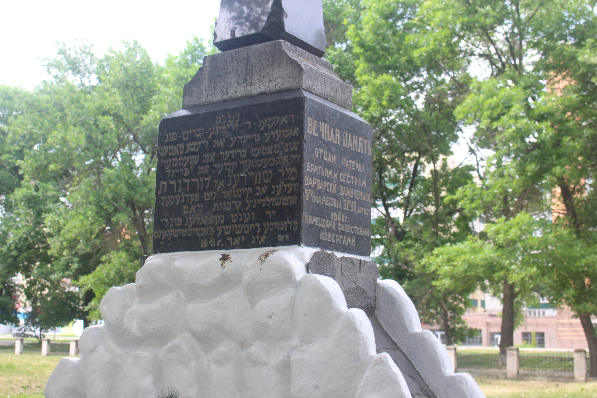 У 1955 році на центральній могилі встановлено гранітний обеліск висотою 2,65 м з написом на єврейській та російській: „Вечная память отцам, матерям, братьям и сестрам варварски замученным 5-го дня месяца ЗЛУЛ, август 1941 года немецкими фашистскими извергами” мовах. На 2-х крайніх могилах встановлені цегляні пілони висотою 3,5 м з написом: „Жертвам фашизма. Великая Отечественная война. 1941-1945”.