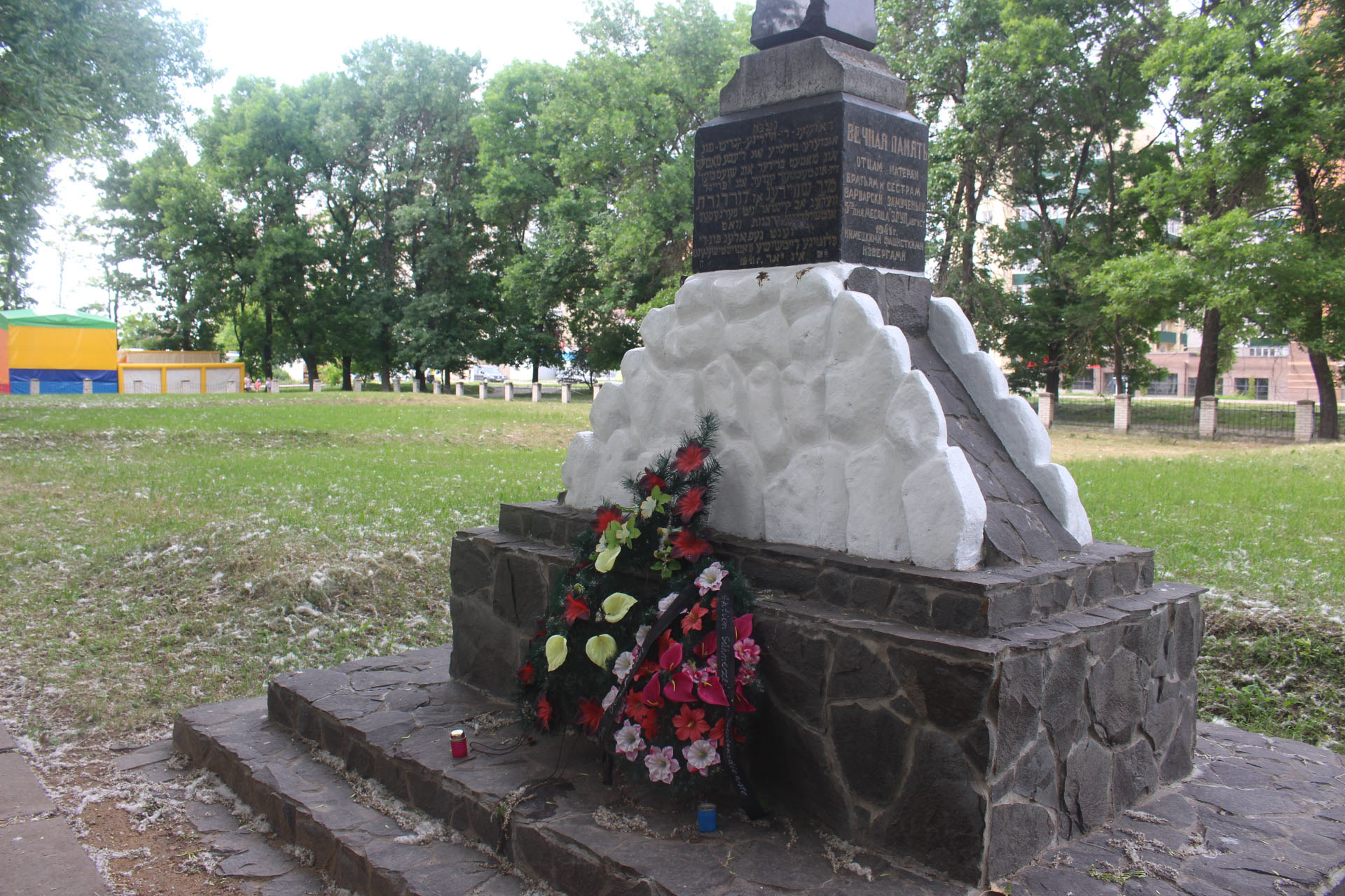 У 1955 році в центрі поховання встановлено цегляний цементований обеліск розміром 4 х 1,95 х 1,95 м з написами на єврейській та російській мовах: "Вечная память отцам и матерям, братьям и сестрам, детям и внукам варварски замученным пятого дня месяца ЗЛУЛ, август 1941 года немецко-фашистским и извергами”.