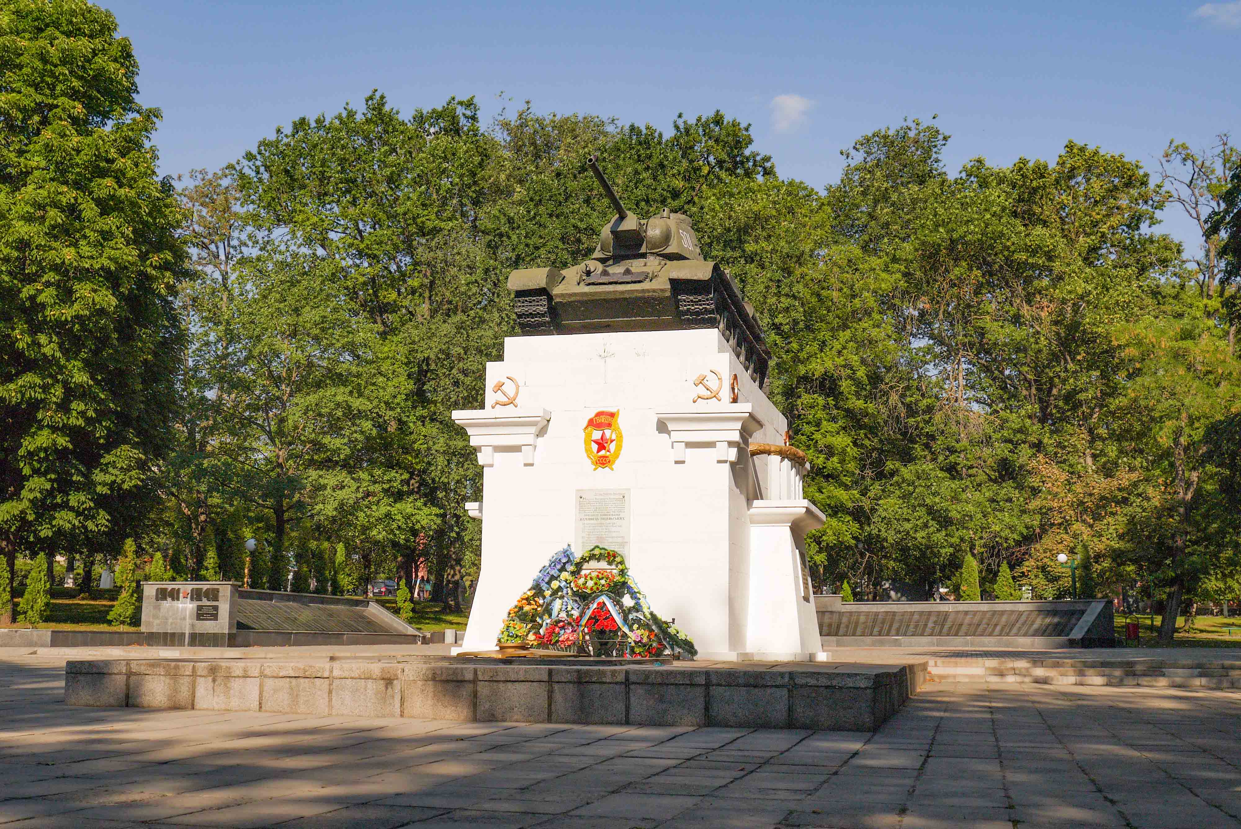 В сквері розташованому між вулицями Симона Петлюри (колишн. Уральська), Лесі Українки, князів Коріатовичів, Огієнка у 1948 році встановлено танк "Т-34" на трапецієвидному постаменті з силурійського каменю розміром 4,2 х 3,5 х 6,8 м на честь воїнів 61 та 63 танкових, 29 гвардійської мотострілецької Унецької бригад, 357 гвардійського винищувального протитанкового артилерійського та 359 гвардійського зенітно-артилерійського полків, 131 гвардійського саперного батальйону 10 гвардійського танкового корпусу, 29, 56 танкових та 51 гвардійського винищувального протитанкового артилерійського полків, 16 гвардійської та 49 механізованих бригад 6 гвардійського механізованого корпусу, 51 мотоциклетного полку армійського підпорядкування 4 танкової армії, які відзначилися в березні-квітні 1944 року в боях за визволення міста та його передмість від німецько-фашистських загарбників.