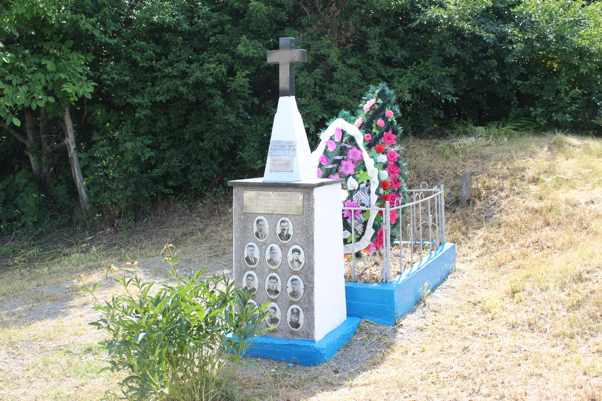 У 1946 році на могилі встановлена залізобетонна скульптура воїна висотою 2,05 м. і вапняковий обеліск висотою 1,25 м з написом: „Генерал-майор интендантской служби ВАСИЛЬЕВ Сергей Терентьевич 1897-1944... Уроженец Кировоградской области с.Павлыш” 4 вапнякові обеліски висотою 1,45 м з написами: „Старший лейтенант интендантской служби ГУРОВИЧ Израиль Матвеевич 1912-1944... Уроженец ПолтавскоЙ области гор.Кременчуг”, „Инженер-капитан ОЛЕЙНИК Дмитрий Иванович 1914-1944... Уроженец Винницкой обл. Томашпольского района с.Ярошивка”, „Капитан интенлантской службы ПОВАДЫРЕВ Иван Андреевич 1912-1944... Уроженец Черниговской обл.”, „Красноармеец РОЗИЕВ Ачил 1922-1944... Уроженец Чарджоус-ской обл. Фарабского р-на, с.Кондак”.