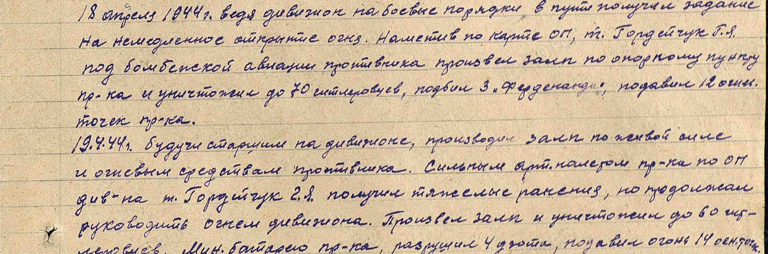 Сьогодні ми публікуємо історію подвигу гвардії старшого лейтенанта Гордійчука Григорія Яковича.