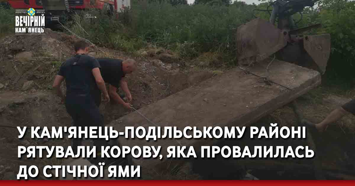 26 червня о 12:49 до Служби порятунку «101» надійшло повідомлення про те, що в селі Біла, Кам`янець-Подільського району, Чемеровецької територіальної громади, потрібна допомога по діставанню корови з стічної ями.