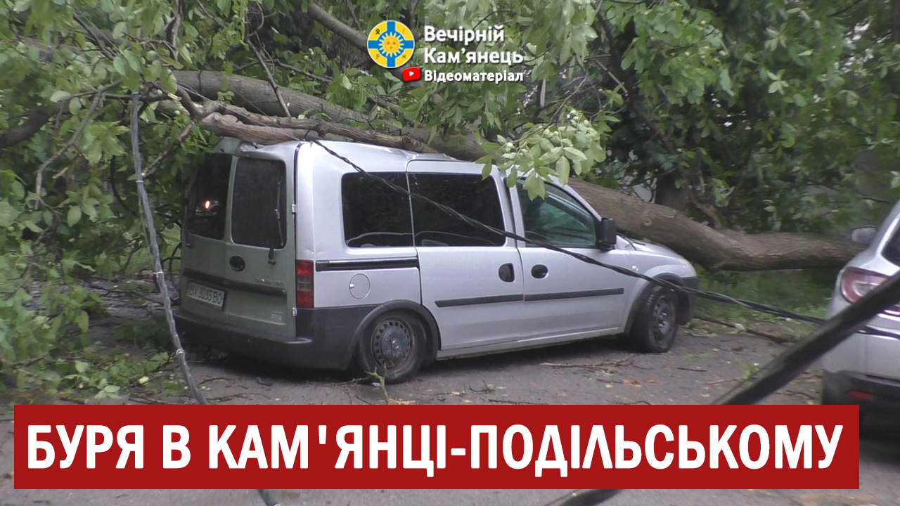 У Кам'янці-Подільському негода знову натворила біди. В центрі міста в дворі по вул. Соборна, 14 на припаркований легковий автомобіль впало дерево. Окрім цього були пошкодженні лінії електропередач, які ведуть до будинку. Дивом вціліла автівка яка стояла поруч.