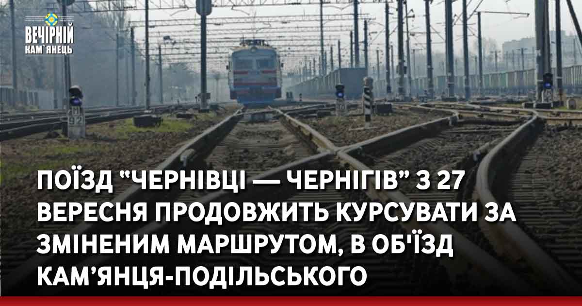 У зв’язку із цим вищевказаний поїзд Чернівці-Київ-Чернігів курсуватиме об'їзним шляхом — через Тернопіль та Заліщики. Відповідно, через об’їзд з маршруту виключені зупинки на станціях Новоселиця, Ларга, Кам'янець-Подільський та Дунаївці.