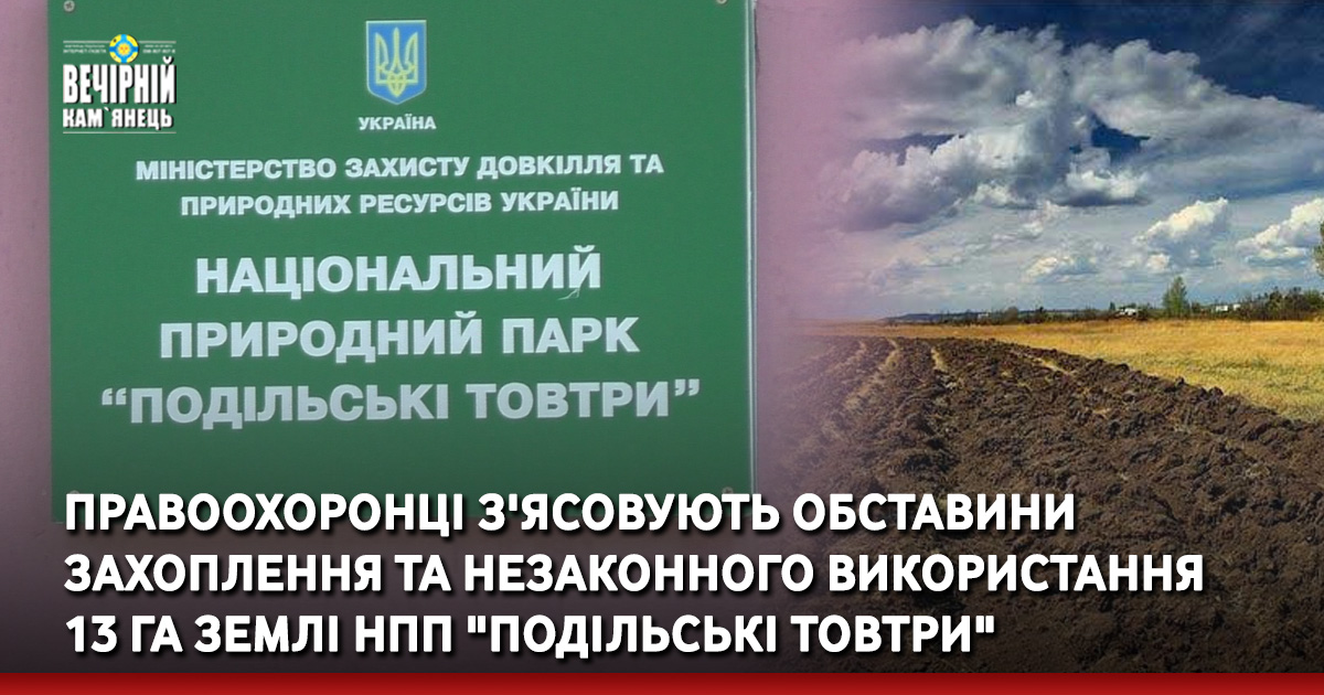 У вересні правоохоронцями виявлено факт самовільного зайняття та використання 13 га землі на території національного природного парку "Подільські Товтри".