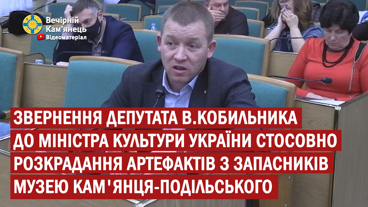 На останньому пленарному засіданні міськради депутат Василь Кобильник зазначив, що до нього надійшла інформація про можливе розкрадання культурних цінностей з запасників Кам'янець-Подільського музею. Він закликав депутатський корпус та керівництво міста негайно відреагувати та перевірити відповідну інформацію.