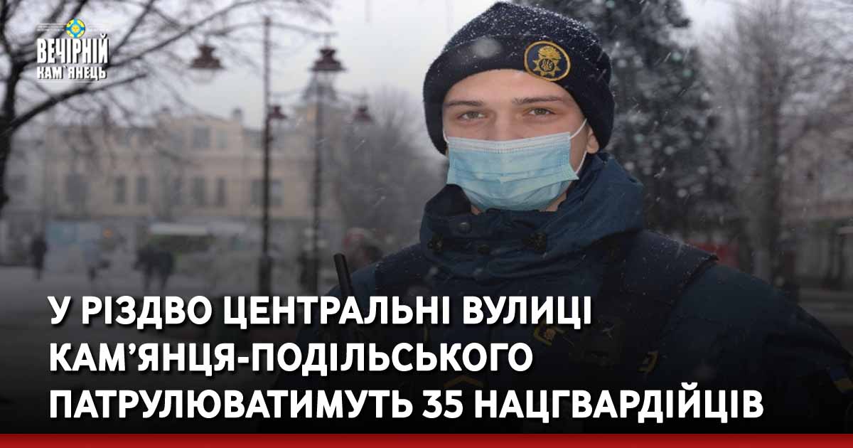 Завдання служби з охорони громадського порядку протягом 6 та 7 січня виконуватимуть 37 патрульних Нацгвардії у Хмельницькому та 35 – у Кам’янці-Подільському, що складає 21 військовий наряд, 19 з яких піші, із залученням двох кінологічних розрахунків, та 2 автомобільних патруля.