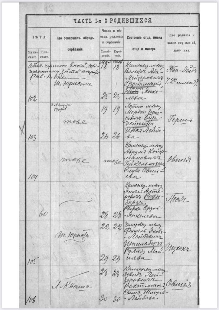 - Шмуел Шпільберг та Рівка Чечік народилися в Кам’янці-Подільському та пройшли традиційні для євреїв обряди у місцевій синагозі.