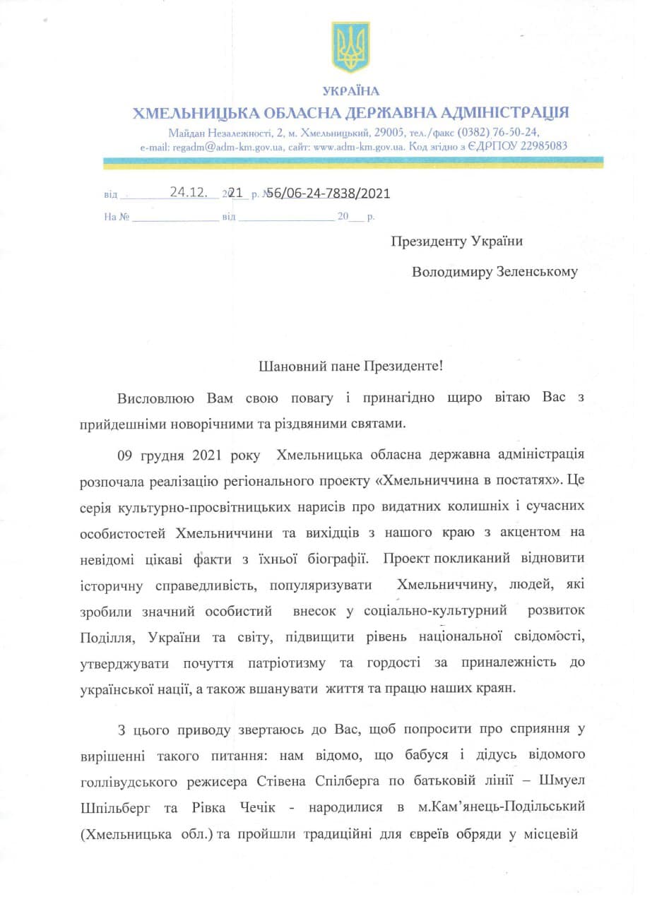 То що ж у результаті пов’язує Стівена Спілберга з Україною та Хмельниччиною зокрема?