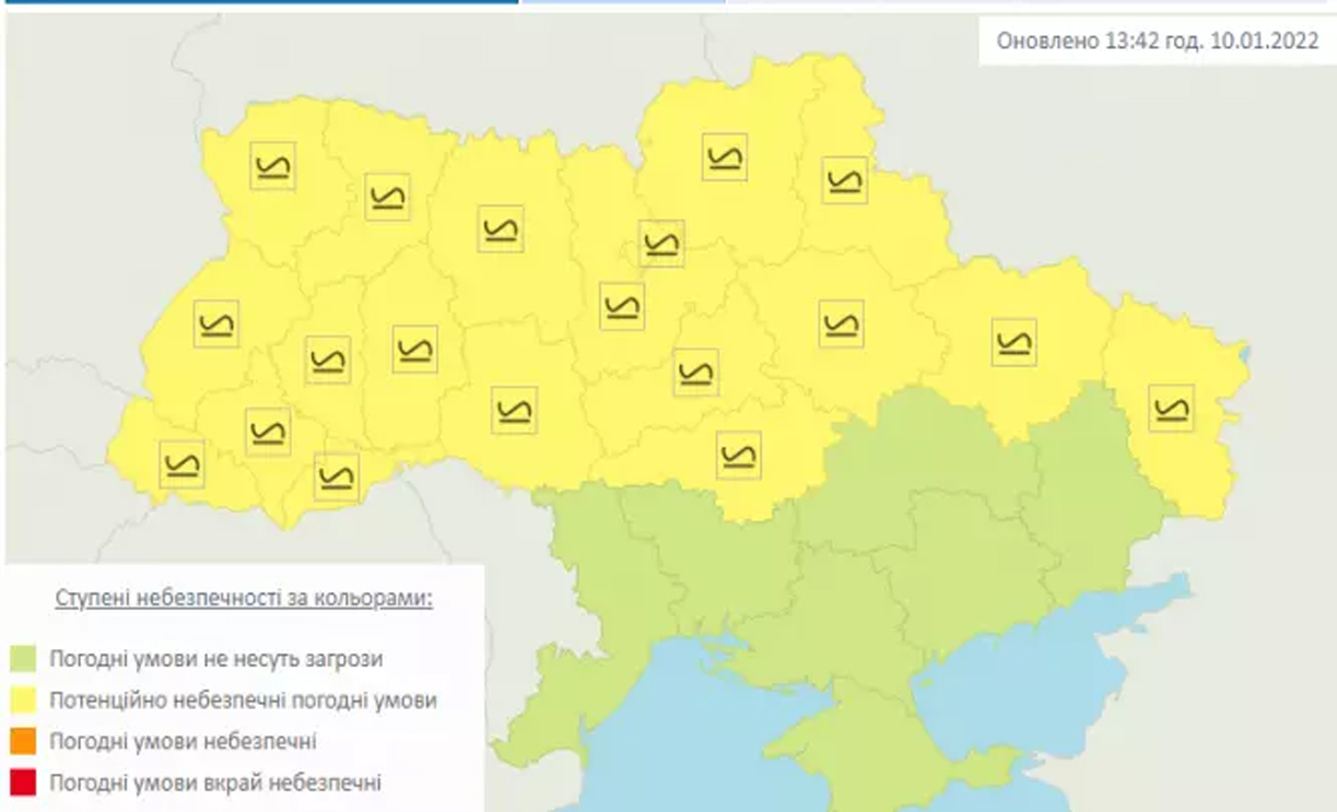 На Хмельниччині оголосили І рівень небезпечності, жовтий. Такі погодні умови можуть призвести до порушення курсування транспорту на дорогах і вулицях.