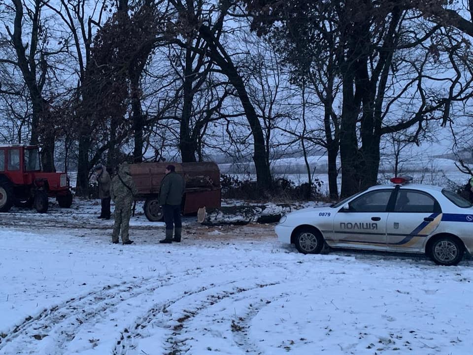 Поряд місця події стояв трактор з причепом, яким він планував вивезти зрізані стовбури дерев додому.