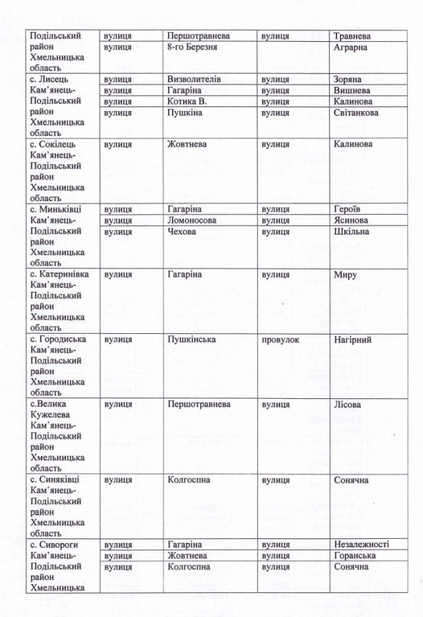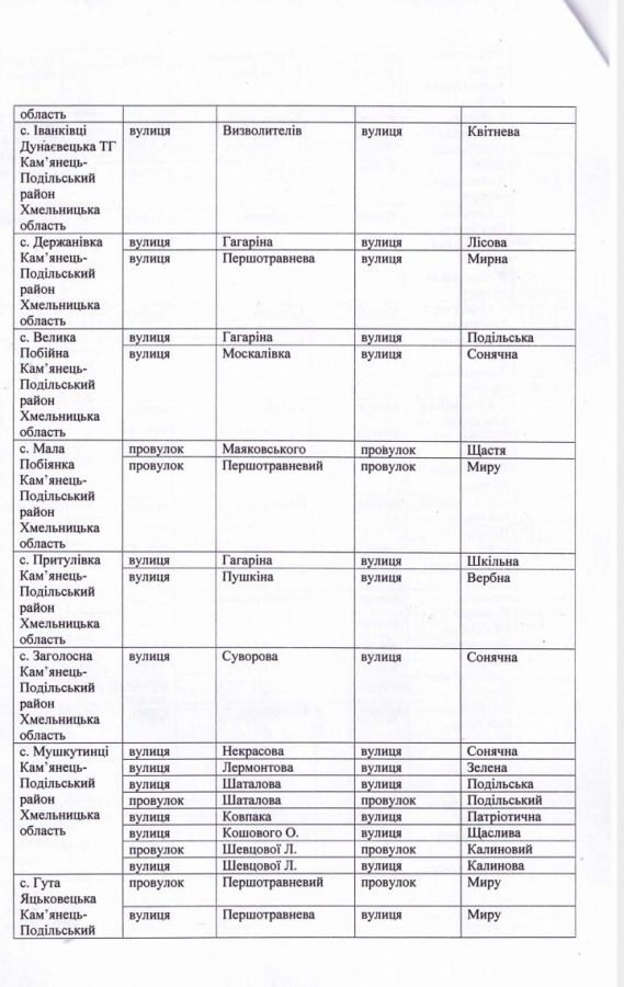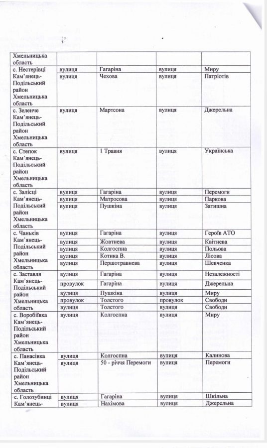 94 вулиці перейменовано у Дунаєвецькій громаді на Хмельниччині.