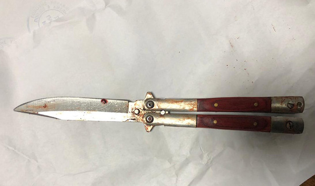 Затримали зловмисника того ж дня на одній із сусідніх вулиць. Увесь одяг молодика був закривавлений. У нього вилучили знаряддя злочину — розкладний ніж зі слідами крові.