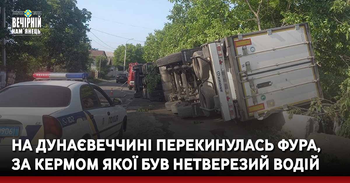 На крутому повороті в місті Дунаївці чоловік не впорався з керуванням та допустив перекидання вантажівки. На щастя, окрім вантажу, ніхто не постраждав.